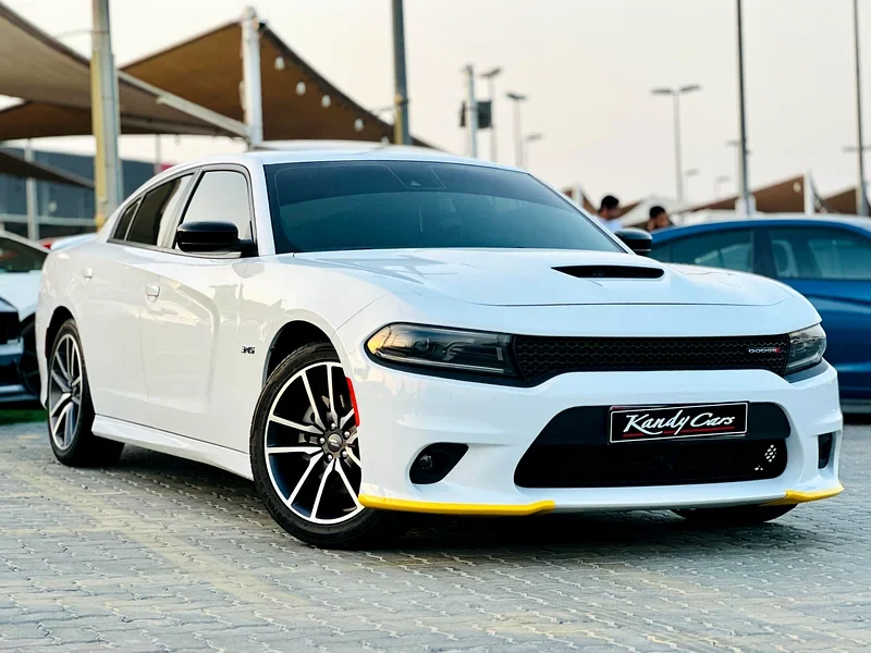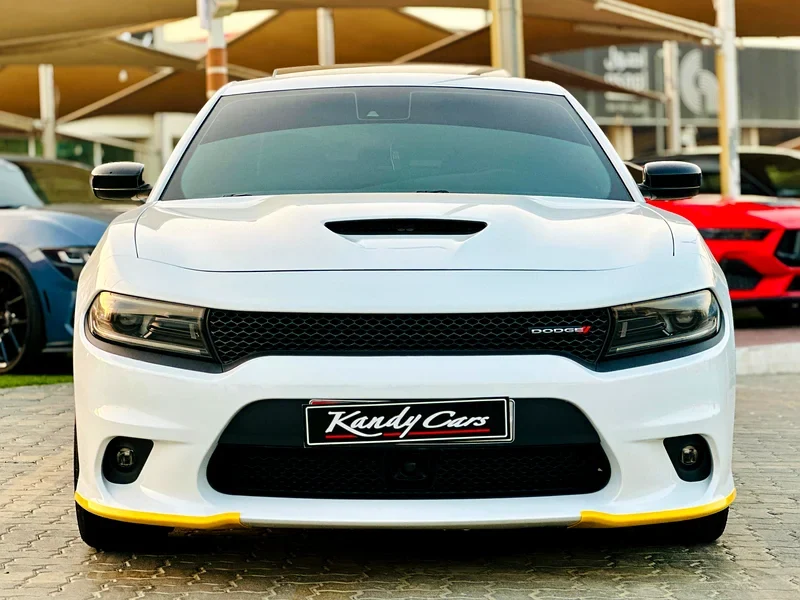 عربية دودج تشارجر R/T دي حالتها ممتازة ومحافظين عليها. الفحص الشامل بتاعنا أكد إن موتور الـ 5.7 لتر هيمي شغال كويس وهادي ومفيهوش مشاكل. العربية عمرها ما حصل لها حادثة، جسمها سليم وأصلي، وصالونها نظيف وشاشاتها شغالة. نلاحظ بشكل خاص واقيات العتبة الصفراء المميزة وفتحة السقف شغالة.