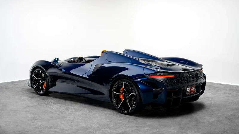 McLaren Elva interior very clean leather trim like new, dark wheels with orange calipers look strong. Papers for export are ready and price is low for quick deal. Payment by crypto or bank is easy, buyer can trust this car.
