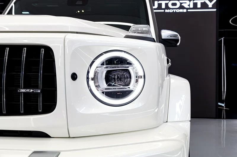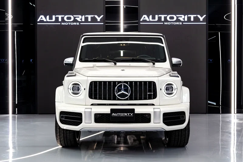 This 2020 Mercedes-Benz G 63 AMG in brilliant white it have body well-maintained and paint color original. The engine it run smooth and quiet. Its transmission it shift fine for driving experience balanced. Inside the cabin is clean, seat leather good condition, all screens and sensors work well.