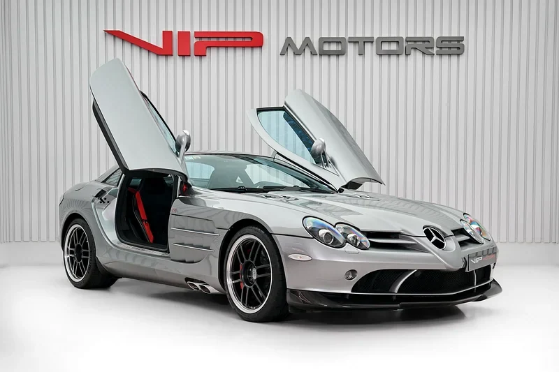 The Mercedes-Benz SLR McLaren 722 Edition has doors like bird wings, very special. Workshop check is finished, report is there. We take crypto payment, and export papers for Tanzania is ready.