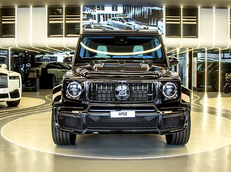 Tener historia completa de servicio de concesionario para este Brabus 800. Todos los papeles limpios y interior muy limpio con detalles en carbono como nuevo. Revisamos bien el coche, no hay problemas, suspensión firme y aire acondicionado frío.