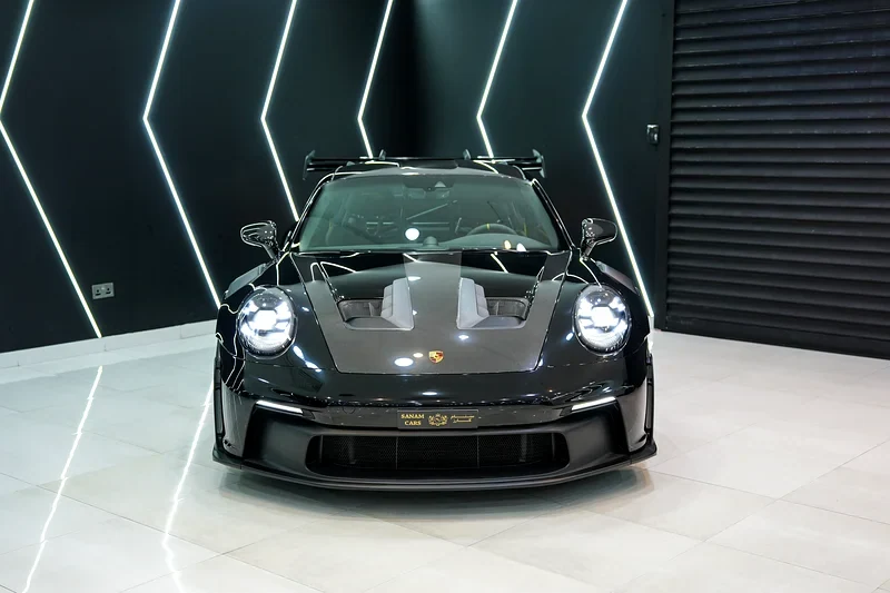 Porsche 911 GT3 RS tiene buen arranque de motor y sensación sólida al conducir. Este coche tiene paquete Weissach con fibra de carbono completa y frenos cerámicos. Interior muy limpio, cuero como nuevo, todas las opciones del coche activas.