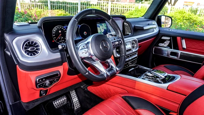Este 2020 Mercedes-Benz G63 AMG está muy bien mantenido. La carrocería del auto está derecha. Sin historial de accidentes. Ruedas con calipers de freno rojos dan apariencia fuerte. Interior tiene cuero suave y pantallas funcionan bien. Envío es seguro y rápido.