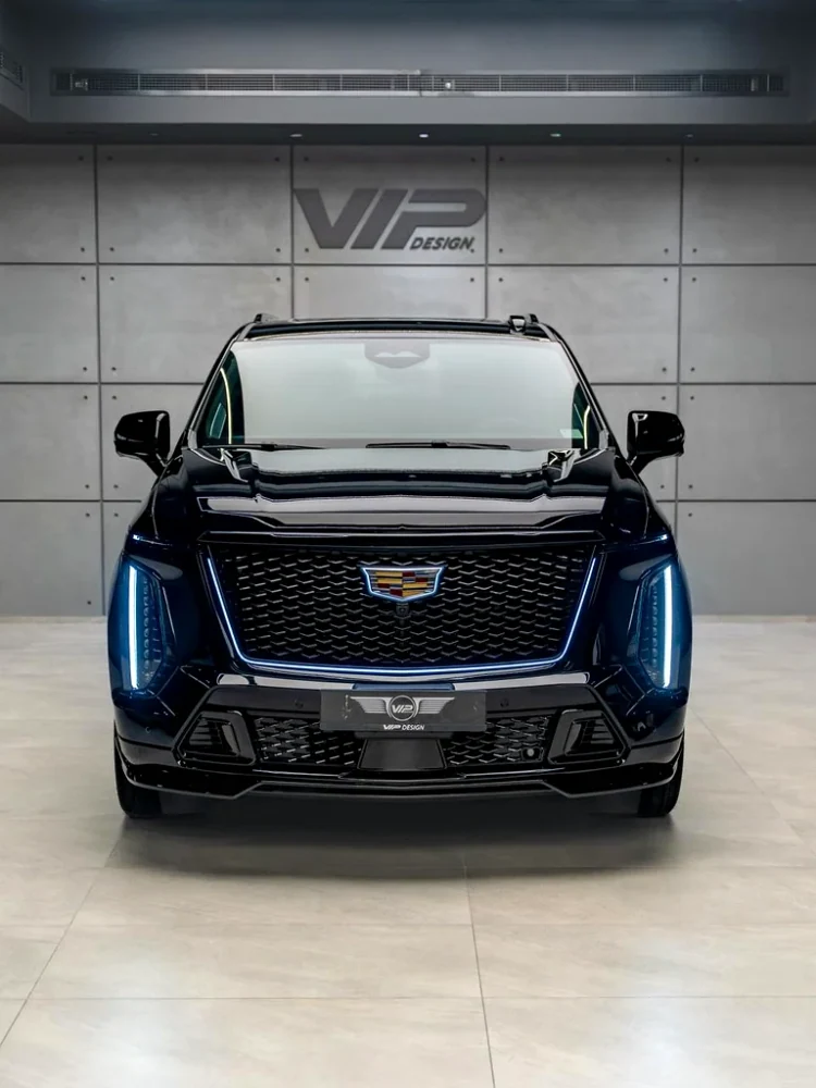 Ce modèle Cadillac Escalade V-Series 2025 donne très fort moteur puissance pour voyage route lisse. Le corps noir avec lumières grille bleu brillant fait une apparence de commanding. Tous papiers export sont fini, prêt pour shipping international rapide.